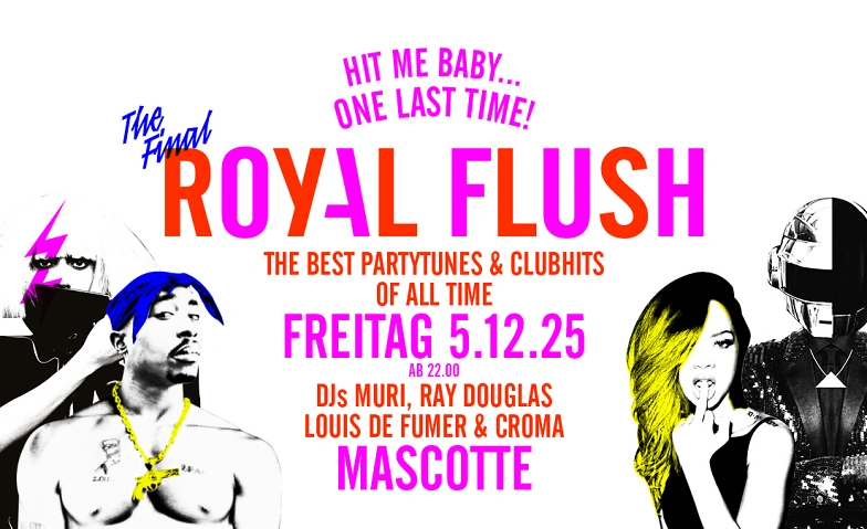 Die Royal Flush DJ-Urgesteine Muri, Ray Douglas, Louis de Fumer und Croma werden euch noch ein allerletztes Mal mit den allerbesten Partytunes, Charthits und Clubsounds aller Zeiten einheizen.