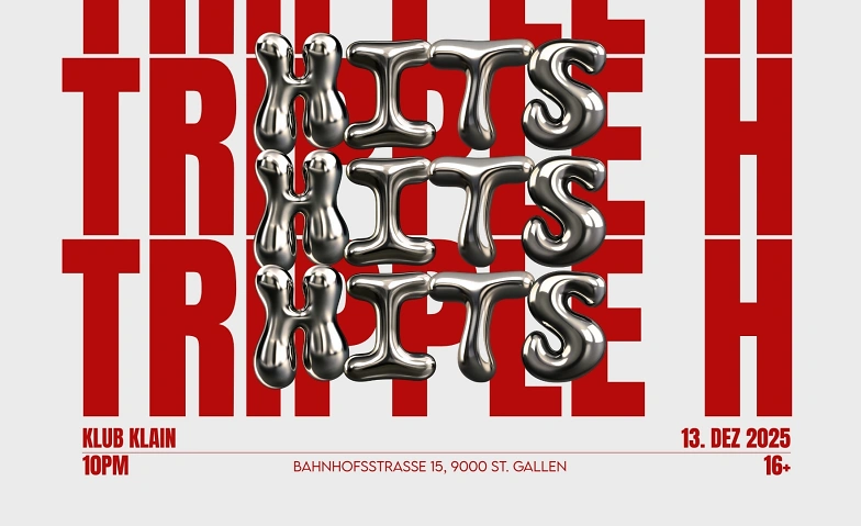 Tripple H (Hits, Hits, Hits!) - ü16 - SAMSTAG 13.12.25 Klub Klain, Bahnhofstrasse 15, 9000 St. Gallen Tickets