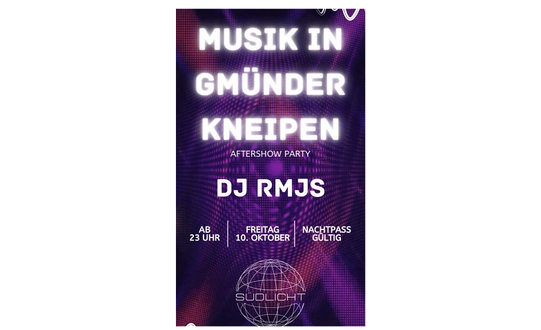 Ab 23 Uhr öffnet das Südlicht zur Aftershow-Party der legendären Kneipen-Nacht in Gmünd🪩