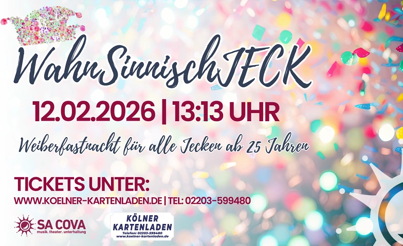 Die Karnevalsparty für alle Jecken ab 25 Jahren. Einlass und Beginn am 12.02.2026 ist ab 13:13 Uhr. Wir freuen uns auf Euch