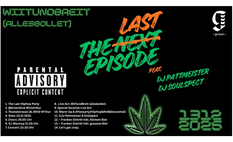 Green Klub, Tösstalstrasse 18, Winterthur, CHCategory: Party / Hip-Hop & Rap