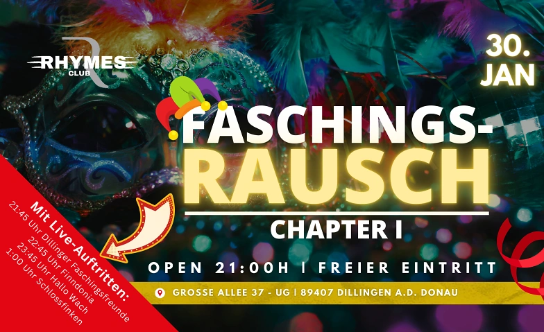 Faschings-Rausch - Chapter I Rhymes Club, Große Allee 37, 89407 Dillingen an der Donau Tickets