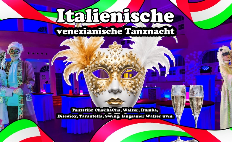 Erlebt einen unvergesslichen Abend im Stil der Italienischen Venezianischen Tanznacht. Wir versetzen den einzigartigen „großen Kuppelsaal„ des Historischen Rathauses in Wemmetsweiler in die fantastische Welt des 18. Jahrhunderts und präsentieren ein Fest der Freude. Illusion und Spaß, mit dem Karneval in Venedig. Verwandelt euch an diesem Abend in die Rolle eines venezianischen Adeligen oder in eine Schönheit des 18. Jahrhunderts.