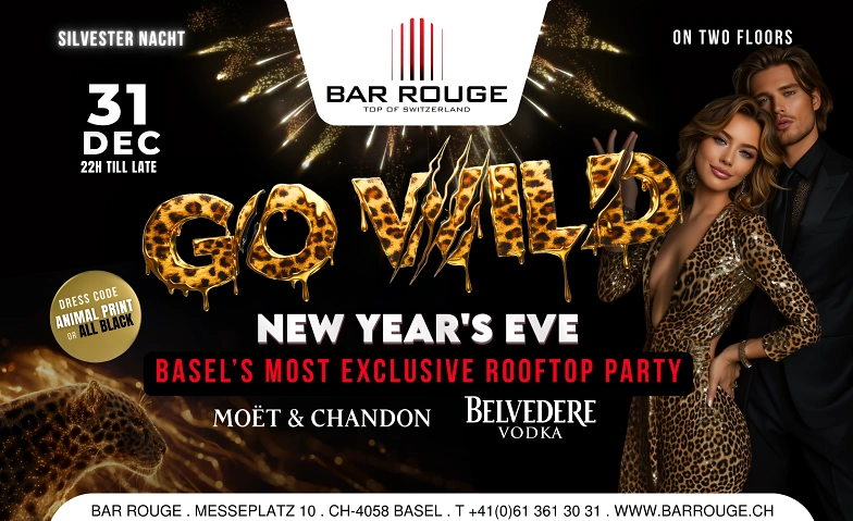 Du und dein neues Ich starten mit uns in ein fabelhaftes 2026 – wild, elegant und voller Glamour. Folge dem Dress Code GO WILD und wähle deinen Look, der alle Blicke auf sich zieht: Ob im auffälligen Leopard- oder Zebra-Style oder als edler schwarzer Panther – zeige deine wilde Seite mit Klasse. Trage deinen Smoking oder dein funkelndes Leo Pailletten-Kleid und vergiss das Bling-Bling nicht – denn Glanz und Extravaganz sind Pflicht für diese Nacht.