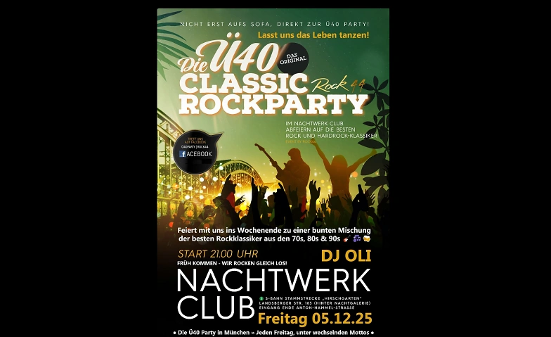 ► Location: Ü40-Party von Rock44 im Nachtwerk Club München, Landsberger Str. 185, 80687 München 📌