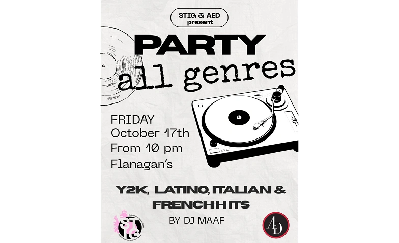 STIG and AED invite you to Flanagan’s next weekend for an unforgettable party 🪩