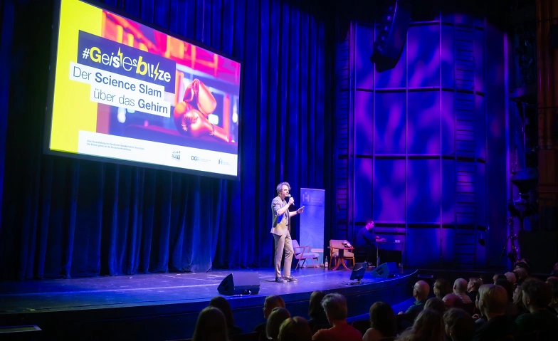 Der Geistesblitze-Science-Slam ist eine Veranstaltung der Deutschen Gesellschaft für Neurologie in Kooperation mit der Volksbühne am Rosa-Luxemburg-Platz und der Science & Stories GmbH (Science-Slam.com).
