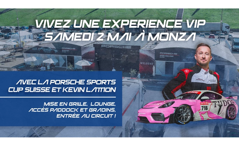 Vivez une expérience incroyable aux côtés du pilote Kevin Lattion sur le mythique circuit de Monza, au cœur de la Porsche Sports Cup Suisse. Le samedi 2 mai 2026 de 8h à 19h