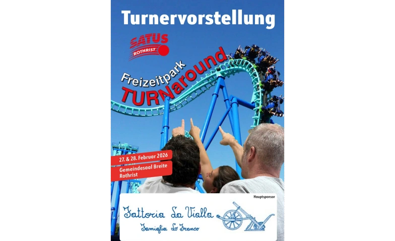Der SATUS Rothrist, der vielfältige Sportverein für alle Generationen unterhält sie gerne an den diesjährigen Unterhaltungsabenden. Das diesjährige Motto „Freizeitpark TURNaround" ist sehr vielfältig und führt als roter Faden durch den Abend. Die Türen sind ab 18.00 Uhr geöffnet.