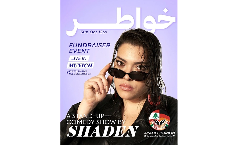 An Evening of Laughter for a Cause. Join us for a special Stand-Up Comedy night with the brilliant and renowned comedian Shaden! This unique event is organized in collaboration with Ayadi Libanon – Brücken der Solidarität e.V.