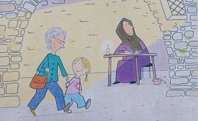 Das kleine Mädchen Clara hört von ihrer Gotta die einzigartige Geschichte der Wiborada von St.Gallen und entdeckt auf dem Weg durch die Stadt deren Spuren: Klosterhof, St.Georgen, St.Mangen, Wiboradaweg, Stiftsbibliothek.