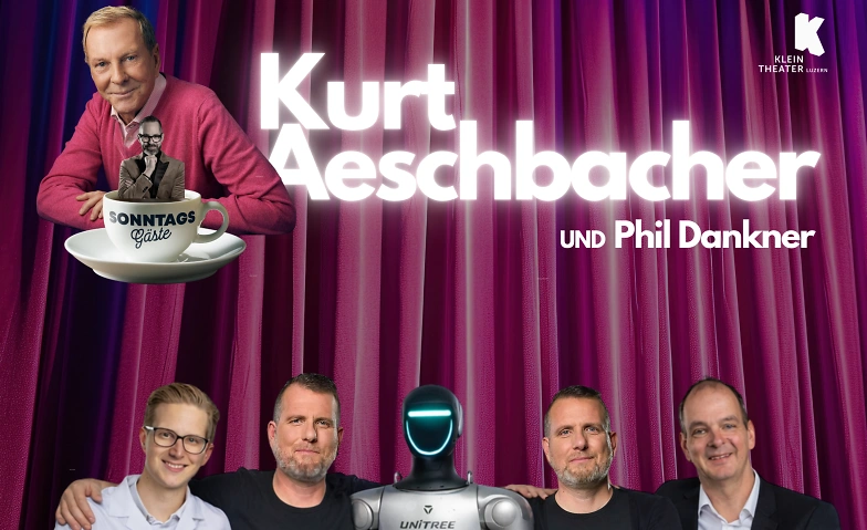 Talklegende Kurt Aeschbacher kommt mit seinem exklusiven Bühnenprogramm nach Luzern. Über 40 Jahre hat er die Schweizer TV-Landschaft geprägt wie kein anderer. An ausgewählten Sonntagen empfängt er spannende Persönlichkeiten und sorgt für überraschende Konstellationen und inspirierende Gespräche. Jede Show ist mit vier Gästen eine Entdeckung fürs Publikum. Als Bühnenpartner, Musiker und künstlerischer Leiter steht Phil Dankner, der das Format für Kurt Aeschbacher konzipiert hat, mit dem Kult-Moderator auf der Bühne. Somit wird die Sonntagstradition mit vielen Elementen neu zelebriert und sorgt für einen zeitlosen Unterhaltungswert.