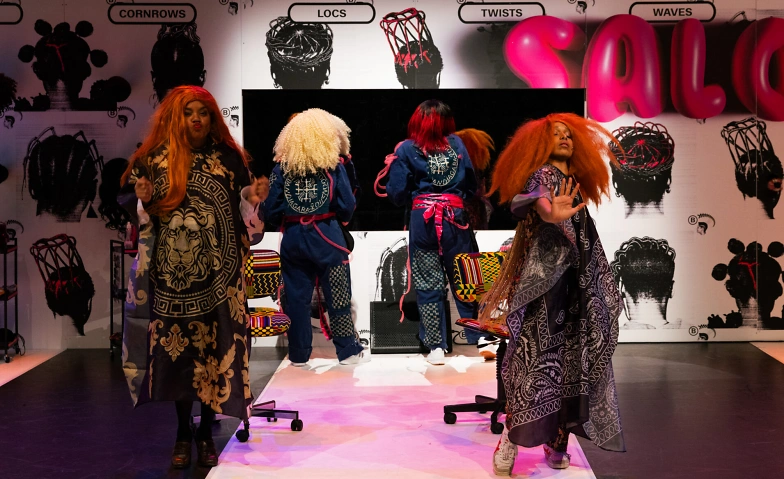 Seit Generationen treffen sich Schwarze Menschen in Schönheitssalons, um sich die Haare machen zu lassen, Haarprodukte zu kaufen und über vergangene und aktuelle Ereignisse zu sprechen. In «Beautysalon» versammeln sich vier Schwarze Menschen in einem Friseursalon und verwandeln diesen in einen Safer Space, einen Nachrichtenspot, eine politische Plattform, in einen Ort der Beratung und der Flucht vor Rassismus. Während neue Frisuren gemacht werden, erzählen sie sich Geschichten über die Schwarze Schweiz. Dies ist ihr Raum, dies sind ihre Geschichten. Das Stück greift Themen wie Mikroaggressionen, kulturelle Aneignung und die Dekonstruktion von Schönheitsstandards auf und erzählt Geschichten von Identität, Empowerment und Widerstand.