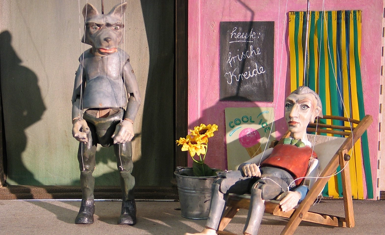 Märchen sind ja bekanntlich manchmal ganz schön gemein, so daß man sich manchmal auch ganz schön fürchten kann. Aber manchmal macht das Fürchten auch ein kleines bißchen Spaß, so im Märchen. Und vielleicht ist der böse Wolf vom Theater im Globus auch nur deshalb etwas gemein, weil er so großen Hunger hat. Als Feinschmecker muß er sich etwas einfallen lassen, wenn er besseres als zusammengekehrte Reste essen will. Diesen Wolf kann man eigentlich verstehen und manchmal auch ein wenig gern haben, wenn er geschickt und einfallsreich und auf seine eigene Art zum Ziele kommt. Aber wenn er dann doch die kleinen Geißlein mit Haut und Haaren herunterschlingt, ist alles wieder wie im Märchen der Brüder Grimm: die Geißlein kommen lebend heraus aus dem Wolfswanst und der Übeltäter fällt in den Brunnen.