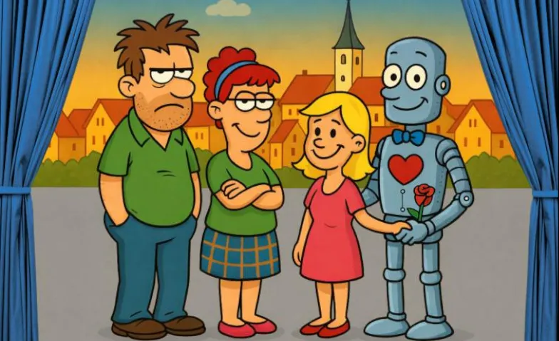 Kurzerhand werden die echten Gatten in den Urlaub geschickt und durch programmierte, stets lächelnde High-Tech-Ebenbilder ersetzt. Mit dieser „geheimen Wunderwaffe“ scheint der Sieg beim Wettbewerb sicher. Doch die echten Männer riechen den Braten und schmieden einen Plan, der das künstliche Liebesglück gewaltig ins Wackeln bringt...