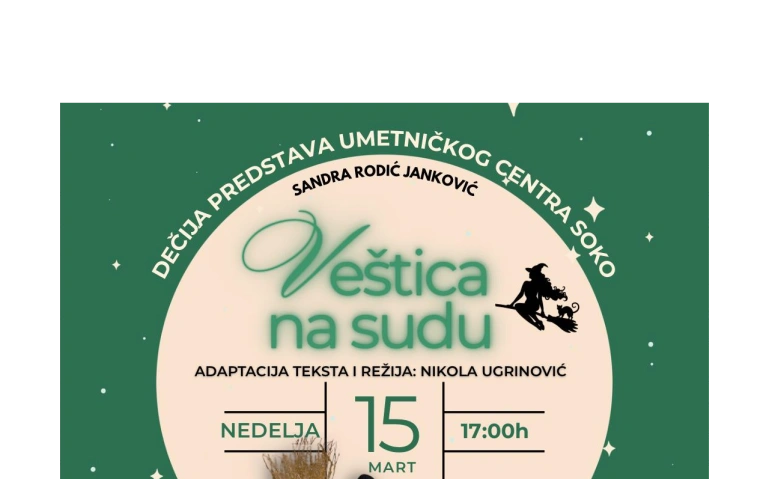 Nakon tri rasprodata izvođenja u Bazelu, hit dečja predstava „Veštica na sudu“ kreće na svoje prvo gostovanje! U organizaciji udruženja Feniks, u nedelju 15. marta u 17:00č, dečiji glumački ansambl Umetničkog centra SOKO donosi magiju u Rothenburg (Luzern). Ne propustite ovu sjajnu priču koja svojom duhovitošću i šarmom podjednako osvaja i decu i odrasle!