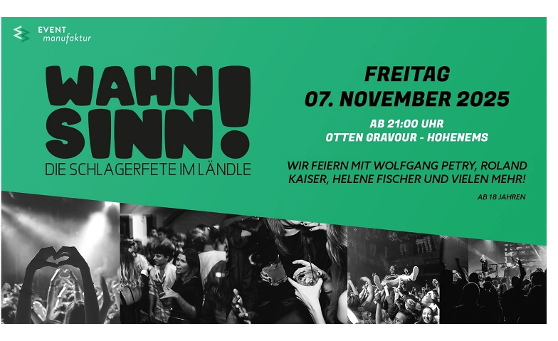 Wahnsinn! - Die Schlagerfete im Ländle vendredi, 07 novembre, 21:00 Otten Gravour, Hohenems (AT)