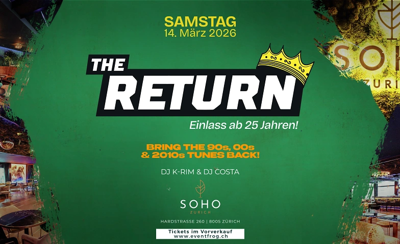 THE RETURN at Soho Club Zürich (25+) samedi, 14 mars, 22:00 SOHO Club Zürich, Zürich (CH)