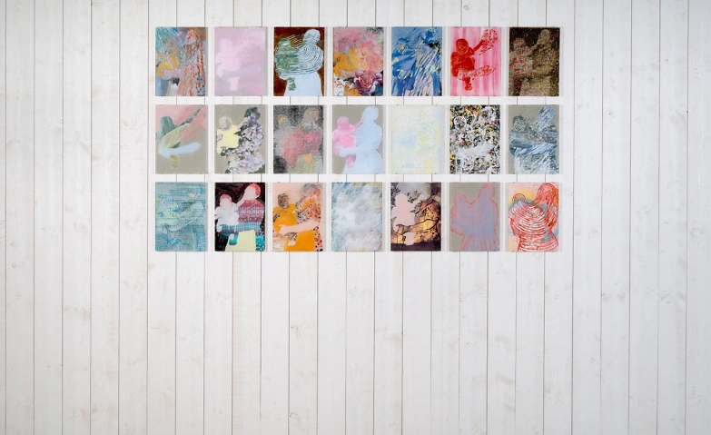 Flavio Micheli ist mit grossformatigen abstrakten Werken hinter Opalglas vertreten. Die Malerei erscheint unscharf und entzieht sich permanent dem suchenden Auge. Anders als Gemälde hinter durchsichtigem Glas, wo Konturen und Farben in voller Klarheit erscheinen, fordern Flavio Michelis Aspects die visuelle Wahrnehmung heraus.