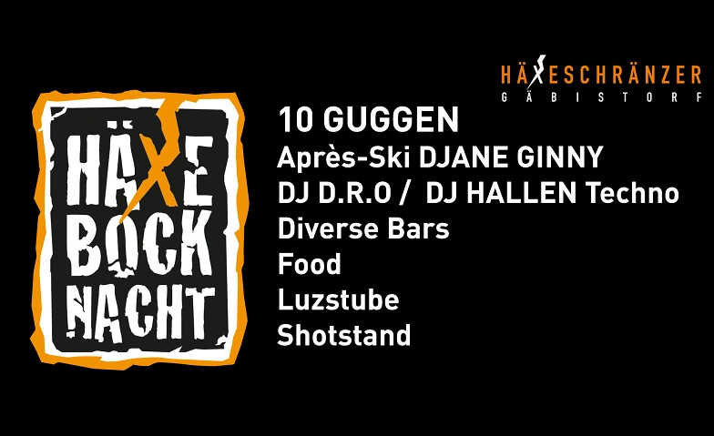 Die grosse Fasnachtsparty mit bombastischer Deko, Partysound, 10 Guggen, diversen Bars und dem legendären Crazy-Shot-Stand! Jetzt reservieren und an unserer legendären Häxebocknacht dabei sein! ...erfrischende Partymusik im modernen Sound, atemberaubenden Lichteffekten und Après-Ski DJ Ginny legendär aus dem Kuhstahl aus Ischgl/Kuhbar Arosa im Häxechessel und DJ D.R.O & DJ HALLEN mit Elektro Musik in der Häxehöli