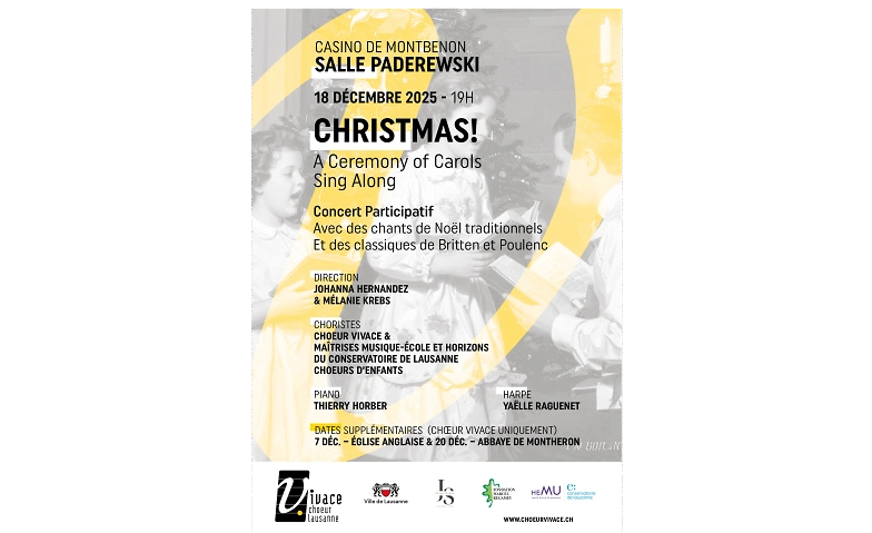 Le chœur Vivace se lance dans un nouveau projet, inspiré en particulier de la tradition sud et nord-américaine des chants de Noël et de la période festive de fin d’année. Il revisite le répertoire des Carols anglais ainsi que des chants de Noël américains et des classiques en français et italien, alternant styles anciens et jazz. Le chœur interprétera des chants profanes et religieux liés à cette période festive. Ils feront appel aux thèmes chers à cette période : paix, lumière, bienveillance. Le concert se veut interactif : le public est invité à chanter avec les choristes adultes et enfants avec pour objectif de faire découvrir l’art choral de manière ludique à un public de familles et d’engager des mélomanes curieux dans un moment de partage.