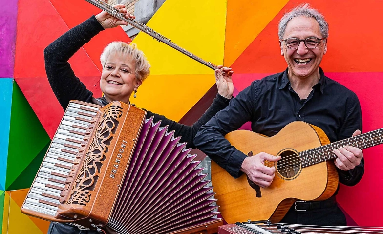Mit Gitarre, Akkordeon, Flöten und Hackbrett zaubert das Duo ein musikalisches Kaleidoskop, bei dem sich Latin, Jazz, Klezmer und Eigenkompositionen um die bunte Vielfalt der Klänge drehen. Faszinierende und ungewöhnliche Klangkombinationen werden in immer neuen Varianten angeordnet, die die Sinne verzaubern.