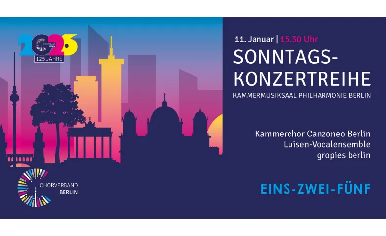 Drei Berliner Chöre – Kammerchor Canzoneo Berlin, Luisen-Vocalensemble und gropies berlin – feiern gemeinsam das 125-jährige Bestehen des Berliner Chorverbandes mit einem innovativen Konzertprojekt im Rahmen der Sonntagskonzertreihe.