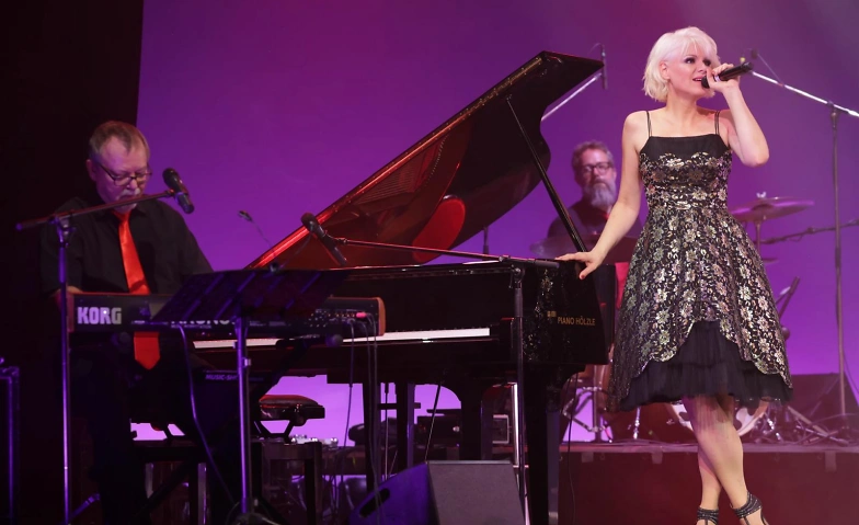 All das bringt sie mit ihren großartigen Musikern Frieder Berlin – Piano und Geige – Paul Müller am Bass, Albert Mayer-Mikosch mit Gitarre und Gesang und Jochen Spahr an den Drums im Friedrichsbau Varieté auf die Bühne.