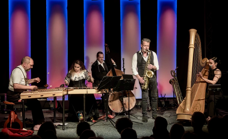 Mit Leidenschaft, verblüffender Virtuosität und ansteckender Spielfreude entstand ein musikalisch-grenzenloses Programm, das mit jedem Stück aufs Neue überrascht. Zwei Hackbretter, eine Harfe, ein Kontrabass und ein Hauch Saxofon erzeugen in einer noch nie gehörten Formation eine mitreissende Energie und Spannung. Von traditionellen bis zu modernen Klängen entführt Saitenzauber das Publikum auf eine unvergessliche Reise in die Seele der Musik.