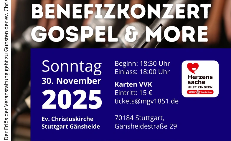 Großes Benefizkonzert 30.11.2025 in der Evangelischen Christuskirche Stuttgart Gänsheide