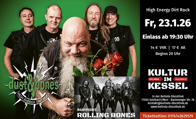 Kultur im Kessel – Dustn Bones Belinda Areal, Backnanger Straße 78, 71560 Sulzbach an der Murr Billets