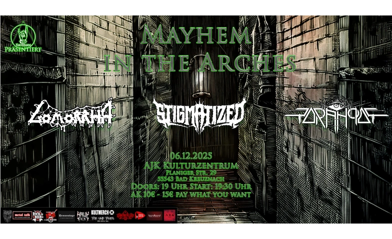 Mayhem in the Arches 06.12.2025 AJK Bad Kreuznach, Planiger Straße 29, 55543 Bad Kreuznach Billets