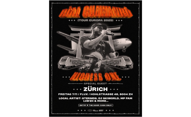 Multikulturell. Laut. Echt. Die international gefeierten Artists Rial Guawanko & Nichess One aus Venezuela bringen ihre Europa-Tournee nach Zürich – mit Message, Energie und echtem Sound. Die Zürcher Crew MP Fam liefert internationalen Live-Rap mit Herz und Haltung. Sterneis spielt ein Beatset, smooth & dope. DJ Skiworld & LVB'ZH legen Vinyl auf – eine Fusion aus HipHop & Latin Rhythms, die direkt in die Beine geht. Und als wäre das nicht genug: hochkarätige Special Guests sorgen für Überraschungen und Gänsehaut-Momente. Nach dem Konzert wird getanzt. Bis spät. Mit euch.
