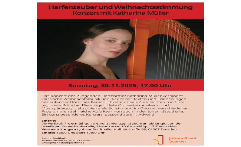 Dresdner Weihnacht - Harfenzauber und Weihnachtsstimmung JohannStadthalle, Holbeinstraße 68, 01307 Dresden Billets