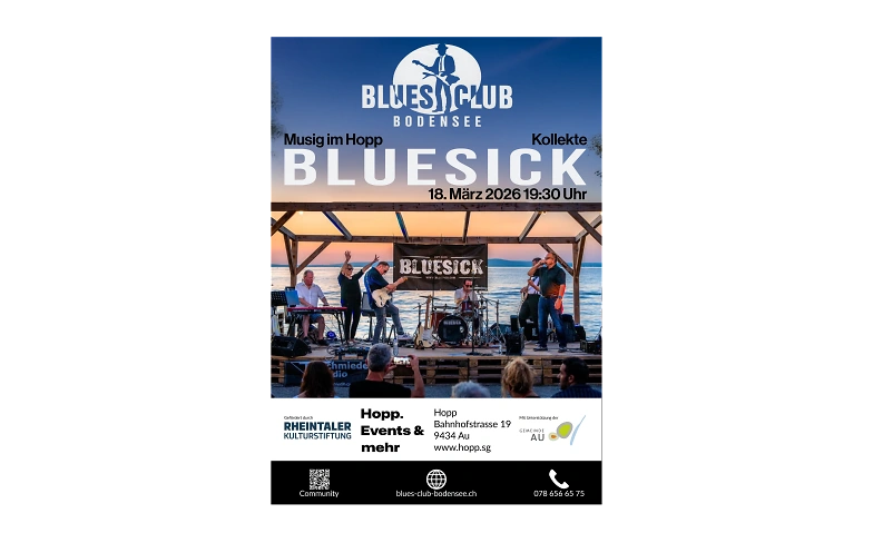 Seit 2010 begeistert BLUESICK aus Bad Ragaz SG das Publikum mit bodenständigem, erdigen Blues und Blues Rock. In der Besetzung Gesang, Gitarre, Hammond, Bass und Schlagzeug versteht es die sympathische und spielfreudige Band aus dem St.Galler Oberland, Songperlen berühmter Blues-Ikonen unterschiedlichster Epochen überzeugend zu interpretieren: sei es von B.B King über Jimmy Hendrix oder Gary Moore bis hin zu Joe Bonamassa oder Henrik Freischlader. Der unverkennbare, einzigartige und energetische BLUESICK-Stil überzeugte auch an der Swiss Blues Challenge 2022 im Volkshaus Basel und bescherte der Ostschweizer Blues Rock Band einen Finalplatz.