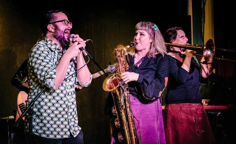 Das Palma Fiasko Orchester bewegt sich in einem Spannungsfeld zwischen Soul und polyglotter Tanzmusik. Die acht Musiker*innen spielen vornehmlich eigene Kompositionen mit viel Witz und Tiefsinn.