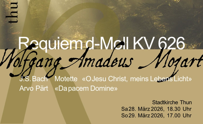 Dazu kombiniert die Thuner Kantorei das grosse Mozartwerk mit zwei kleinen Wunderwerken: Der Motette von Johann Sebastian Bach «O Jesu Christ, meins Lebens Licht», einer Trauermusik, die mit einem gleichen Instrumentarium besetzt ist, wie es Mozart tat, sowie mit dem intensiven, stillen Werk «Da pacem domine» von Arvo Pärt, das solistisch, mit den Gesangssolisten des Abends erklingen wird – und dessen Schlussakkord nahtlos ins Requiem führt.