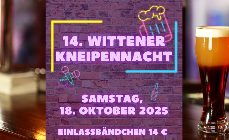 Egal ob Rock, Funk, Indie oder Blues – Musikfans kommen bei dieser einzigartigen Kneipen-Tour voll auf ihre Kosten. Dieser Abend ist die ideale Gelegenheit, Wittens vielfältige Musikszene zu entdecken, neue Locations kennenzulernen und gemeinsam mit Freund*innen durch eine unvergessliche Nacht zu ziehen. Sichert euch frühzeitig Tickets – die Kneipennacht ist regelmäßig ausverkauft!