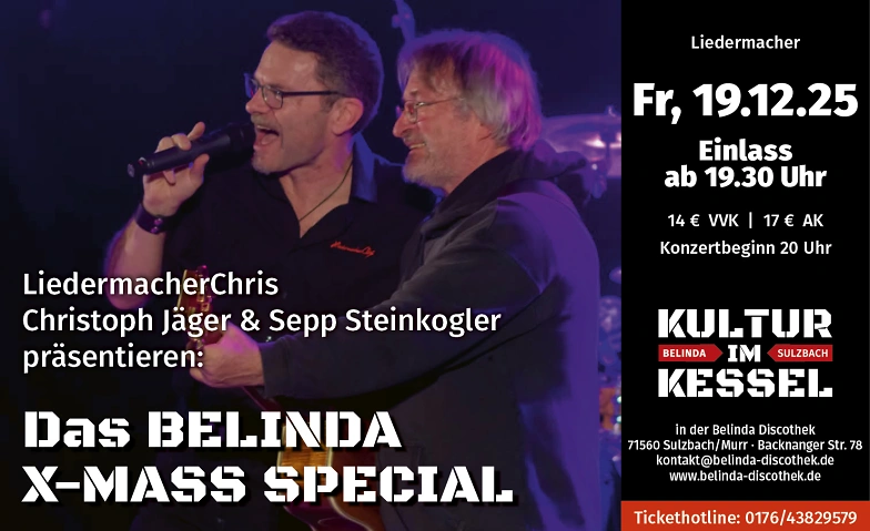 Nach seinen erfolgreichen und viel gelobten Konzerten mit dem Titel des gleichnamigen Albums HERZSCHLAG ist LiedermacherChris seit dem Sommer 2025 mit neuen Songs im Gepäck unterwegs. Auch in seinem neuen Programm AUF DIE FREUNDSCHAFT präsentiert der Singer-Songwriter Christoph Jäger, weiterhin unterstützt von seinem Freund und Gitarristen Sepp Steinkogler, überwiegend Eigenkompositionen, die an die Tradition der Liedermacher und des Chansons anknüpfen. Von der verträumten Ballade bis hin zum temporeichen Lied über die Freundschaft und das Feiern sorgen Einflüsse verschiedenster musikalischer Stilrichtungen beim Songwriting für Abwechslung. Dabei darf sich das Publikum beim kommenden Konzert in der Belinda auf ein eigens auf die Vorweihnachtszeit zugeschnittenes Programm freuen, bei welchem Klassiker wie Cohens Hallelujah oder Garth Brooks Belleau Wood nach langer Pause endlich wieder einmal aufgeführt werden – und auch der diesjährige musikalische Weihnachtsgruß Mary, did You know wird erstmals live zu hören sein.