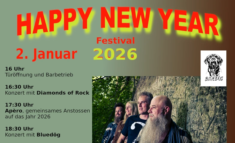 Happy New Year Festival mit Diamonds of Rock & Bluedög