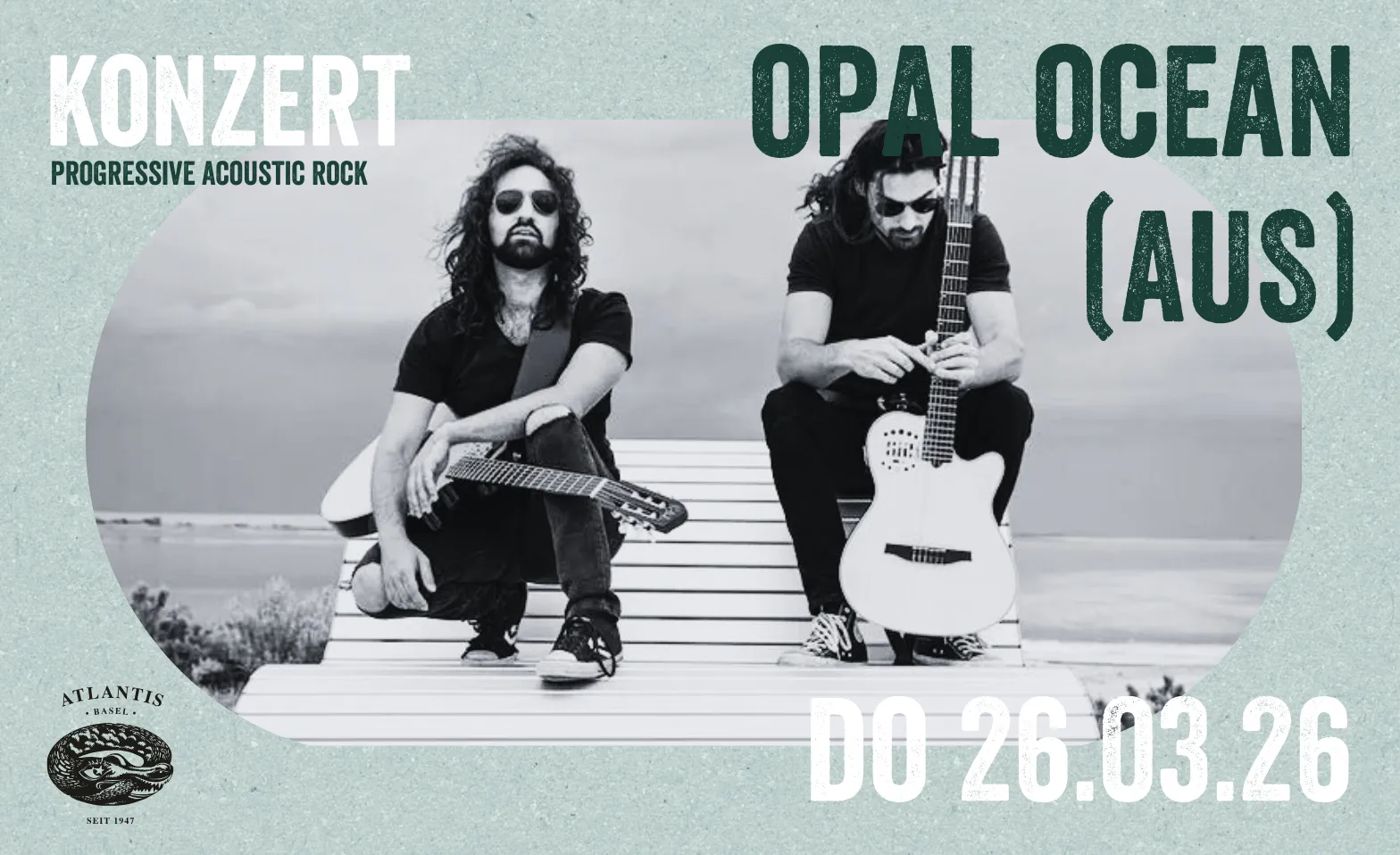 Dynamisch, virtuos und unverkennbar – Opal Ocean ist das australische Gitarrenduo, das neue Maßstäbe in der Welt der akustischen Musik setzt. Seit ihrer Debüt-EP Terra (2015) haben Alex Champ und Nadav Tabak den Ruf erlangt, die rohe Energie des Rock mit den feinen Texturen von Welt- und Progressive-Sounds zu verbinden. Ihre virale Single J.A.M. erzielte mehr als 50 Millionen Aufrufe und machte sie auf einen Schlag zu einem