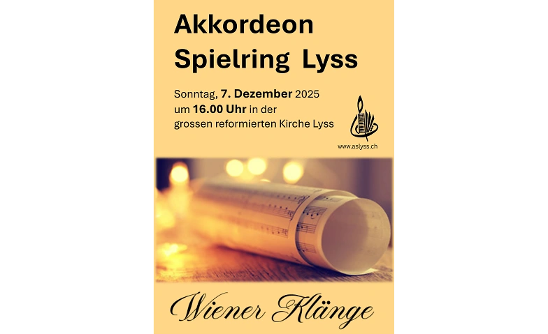 Der Akkordeon-Spielring Lyss lädt herzlich ein zu einem festlichen Kirchenkonzert voller Wiener Charme und besinnlicher Stimmung.