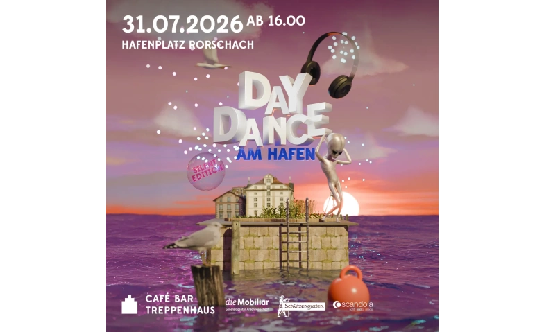 FEIERN, WO ANDERE IN DEN SONNENUNTERGANG SEGELN Silent Daydance am Hafen – zurück auf unserem bewährten Hafenplatz Rorschach, direkt am See zwischen Wasser und Altstadt. Schnapp dir deine Crew und tanze mit der geilsten Crowd durch den Tag und bis in die Nacht. On Top gibts zum Finale beste Aussicht auf das 1.-August-Feuerwerk. Sichere dir jetzt dein Ticket im Vorverkauf – die letzten Events waren restlos ausverkauft! Wir freuen uns auf dich! SOUND An der Silentparty erhältst du Kopfhörer und kannst frei zwischen drei Kanälen auswählen. Die verschiedenen DJs treffen damit also immer genau deinen Geschmack. Wenn nicht, NEXT! Kanal 1: HITS Kanal 2: URBAN Kanal 3: ELECTRONIC DRINKS & FOOD Die Crew versorgt dich an der Bar mit kühlen Getränken. Die vielleicht weltbeste Margarita darf dabei natürlich nicht fehlen. Zusätzlich gibt es auf dem Areal diverse Verpflegungsmöglichkeiten. LOCATION Die Party findet auf dem Hafenplatz Rorschach direkt am Bodensee statt. Der Bahnhof Rorschach Hafen ist gleich nebenan. Google Maps HEADPHONES 1. Ticket an der Kasse vorweisen oder falls noch vorrätig kaufen. 2. Depot hinterlegen: 100 CHF oder Ausweis (Es wird nur die ID oder der Führerausweis akzeptiert). 3. Ihr erhaltet eine Nummer, speichert diese zusätzlich (zB. Auf dem Smartphone) im...