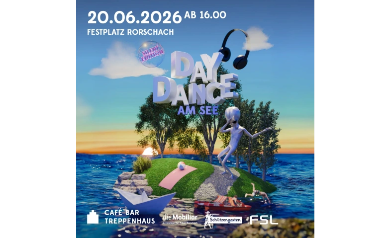 FEIERN, WO ANDERE FERIEN MACHEN Der Daydance am See ist zurück auf dem Festplatz Rorschach! Zwischen Segelhafen und Würth Haus wird wieder getanzt und gefeiert – direkt neben dem Bahnhof, direkt am Wasser, direkt im Sommermodus. Lasst uns zusammen das Insel-Feeling à la Thailand feiern! Schnapp dir Bikini oder Badehose, bring deine Crew mit und taucht ein in einen Tag voller heisser Beats, Sommerfeeling und ausgelassener Stimmung. Da wir auf dem Areal direkten Seezugang haben, könnt ihr euch zwischendurch eine erfrischende Abkühlung im See gönnen! ️ Tickets im Vorverkauf sichern – die letzten Ausgaben waren restlos ausverkauft. Flip-Flops an, Sorgen aus – wir sehen uns am See. SOUND An der Silentparty erhältst du Kopfhörer und kannst frei zwischen drei Kanälen auswählen. Die verschiedenen DJs treffen damit also immer genau deinen Geschmack. Wenn nicht, NEXT! Kanal 1: HITS Kanal 2: URBAN Kanal 3: ELECTRONIC DRINKS & FOOD Die Crew versorgt dich an der Bar mit kühlen Getränken. Die vielleicht weltbeste Margarita darf dabei natürlich nicht fehlen. Zusätzlich gibt es auf dem Areal diverse Verpflegungsmöglichkeiten. LOCATION Die Party findet auf dem Festplatz Rorschach direkt am Bodensee statt. Der Bahnhof Rorschach Hafen ist gleich nebenan. Google Maps HEADPHONES 1. Ticket an der...