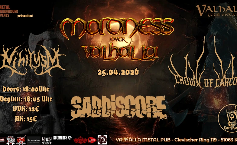 Madness over Valhalla April 26 Valhalla Metal Pub, Clevischer Ring 119, 51063 Köln Billets