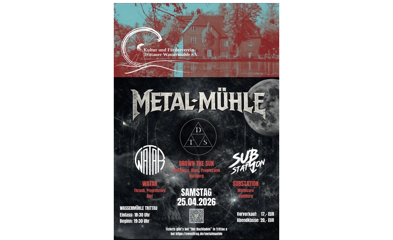 Tickets gibt es bei „DER BUCHLADEN“ in Trittau oder bei https://eventfrog.de/metalmuehle