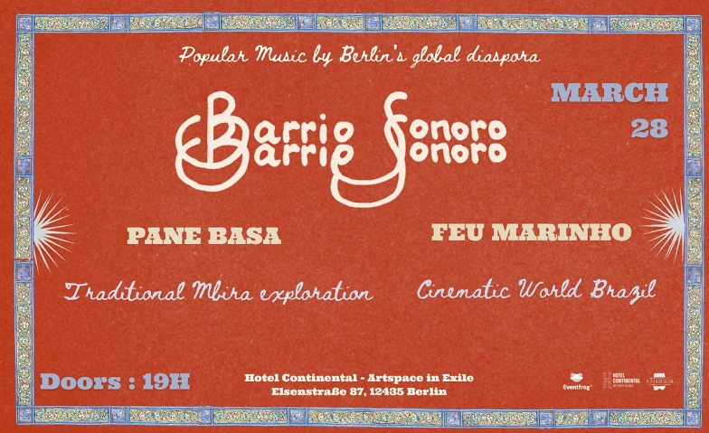 Barrio Sonoro is a new concert series in Berlin that seeks to explore and showcase the rich legacy of global popular music. Featuring artists from all corners of the world, largely based in Berlin. This season offers an in-depth look at the musical heritage of regions such as Brazil, Latin America, the Caribbean, South Africa , Cape Verde, the Mediterranean & Bulgaria. With an emphasis on popular music and the musical traditions that shape local scenes, Barrio Sonoro serves as both a forecast and a reflection of Berlin’s evolving artistic landscape.