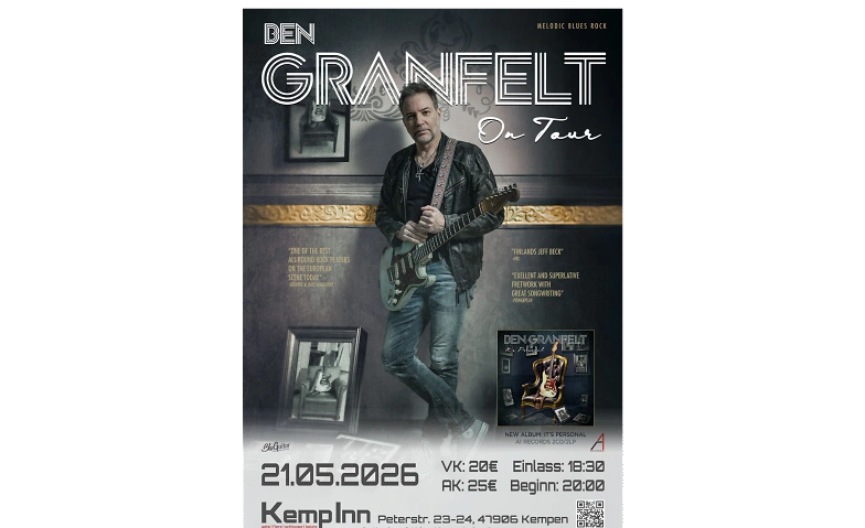 Ben Granfelt - "It's Personal" - sein 21. Solo-Album Kemp Inn, Peterstraße 23, 47906 Kempen Billets