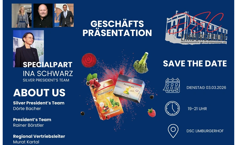 Geschäftspräsentation DSC Limburgerhof der PM International AG, Jahnstraße 12, 67117 Limburgerhof Billets