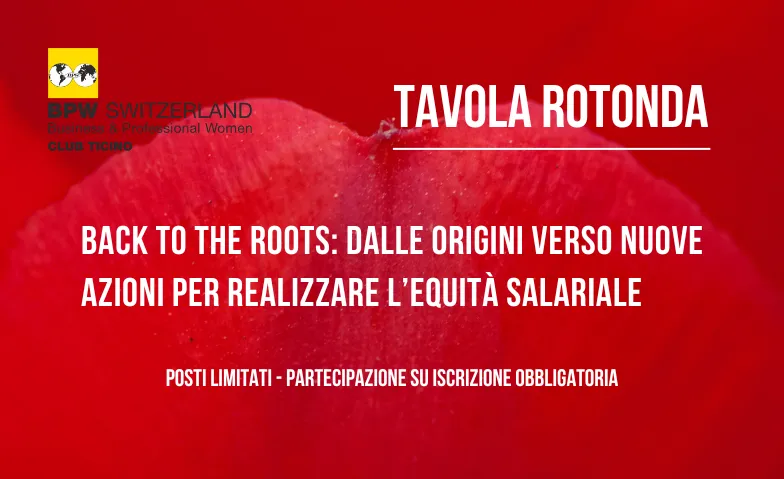 In occasione dell’Equal Pay Day, BPW Ticino organizza la tavola rotonda “Back to the Roots: dalle origini verso nuove azioni per realizzare l’equità salariale”, un momento di confronto dedicato al tema della parità retributiva e alle azioni concrete necessarie per ridurre il divario salariale di genere.